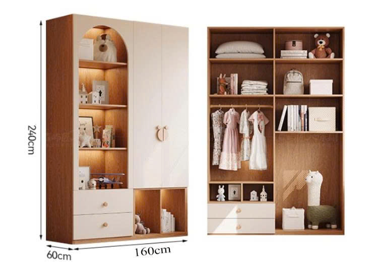 Tủ gỗ quần áo trẻ em được thiết kế các ngăn chứa đồ, kéo ra kéo vào thuận tiện. Bạn có thể dễ dàng phân loại từng ngăn để đồ như ngăn đựng áo, ngăn đựng quần, ngăn để các vật dụng thời trang khác,… vừa là để tạo sự gọn gàng ngăn nắp, vừa giúp bé dễ dàng khi lấy đồ của mình.